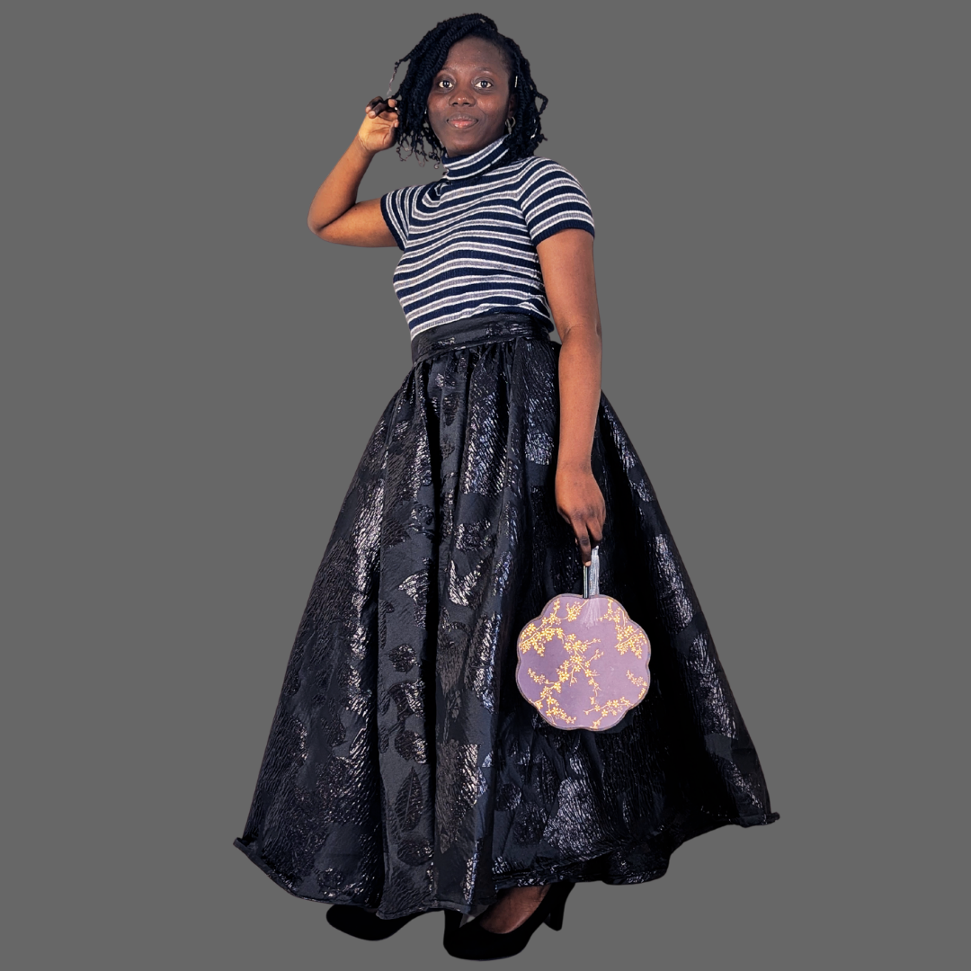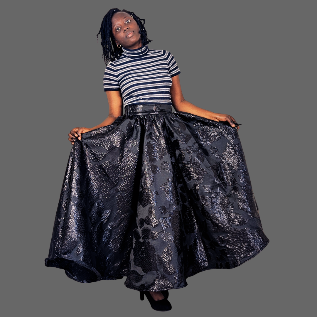 ✹ Jupe 360° en Brocart Jacquard – ÉlĂ©gance StructurĂ©e & Volume MaĂźtrisĂ©